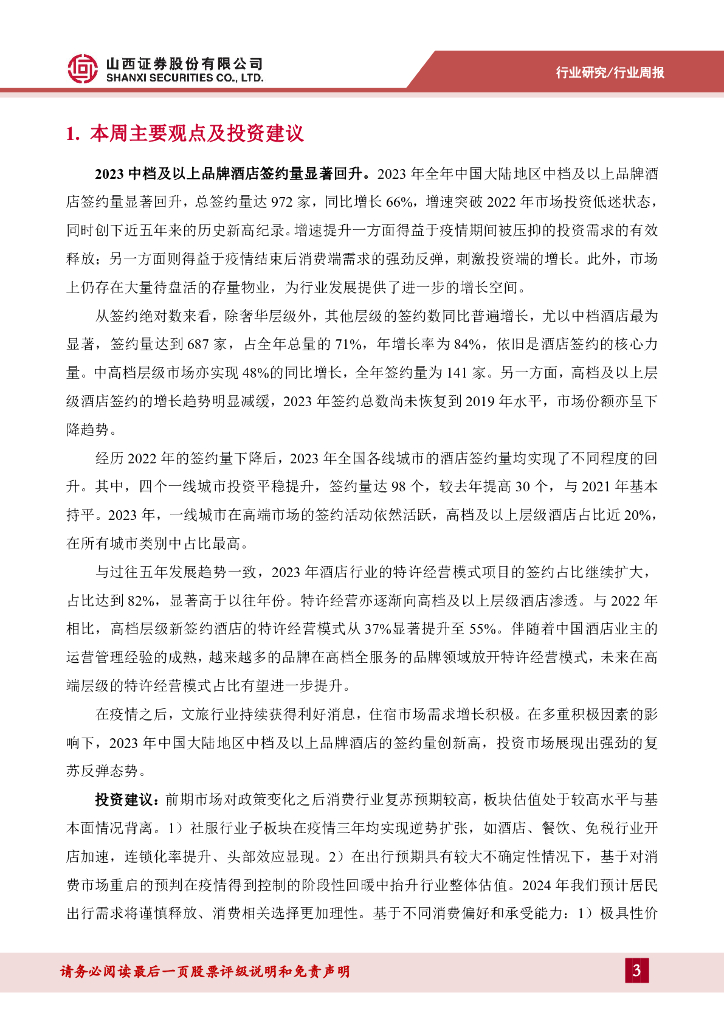 山西证券:消费者服务行业周报:2023中档及以上品牌酒店签约量显著回升.pdf