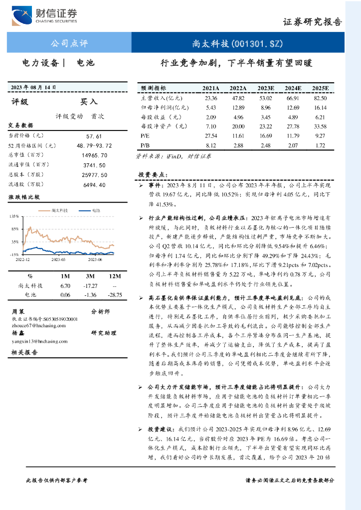 财信证券:尚太科技(001301)-行业竞争加剧,下半年销量有望回暖.pdf
