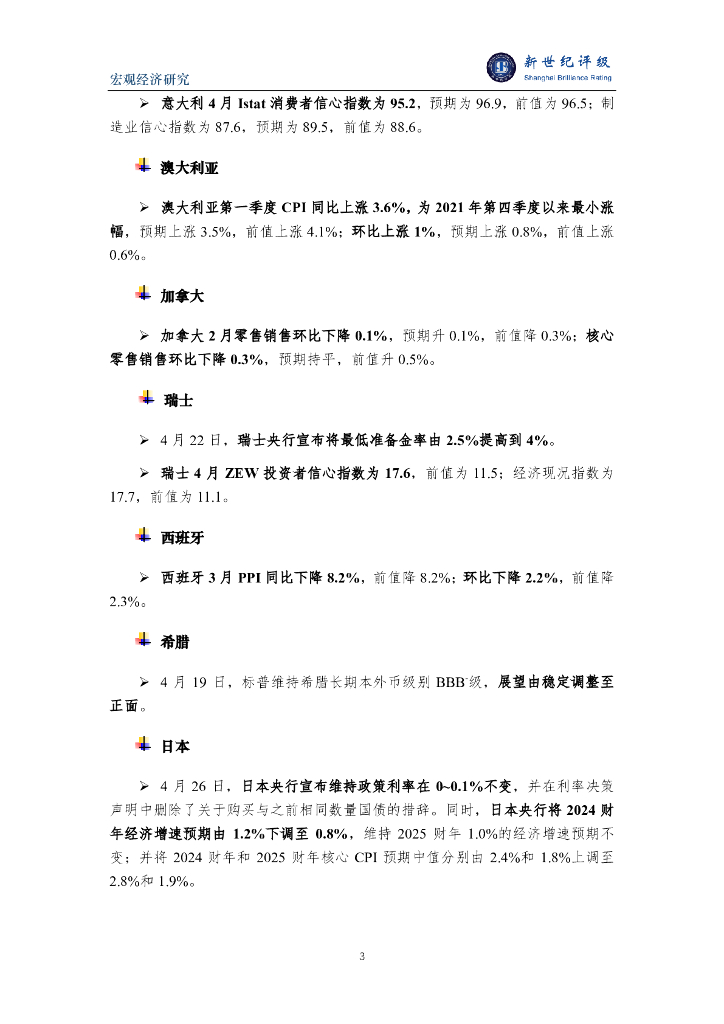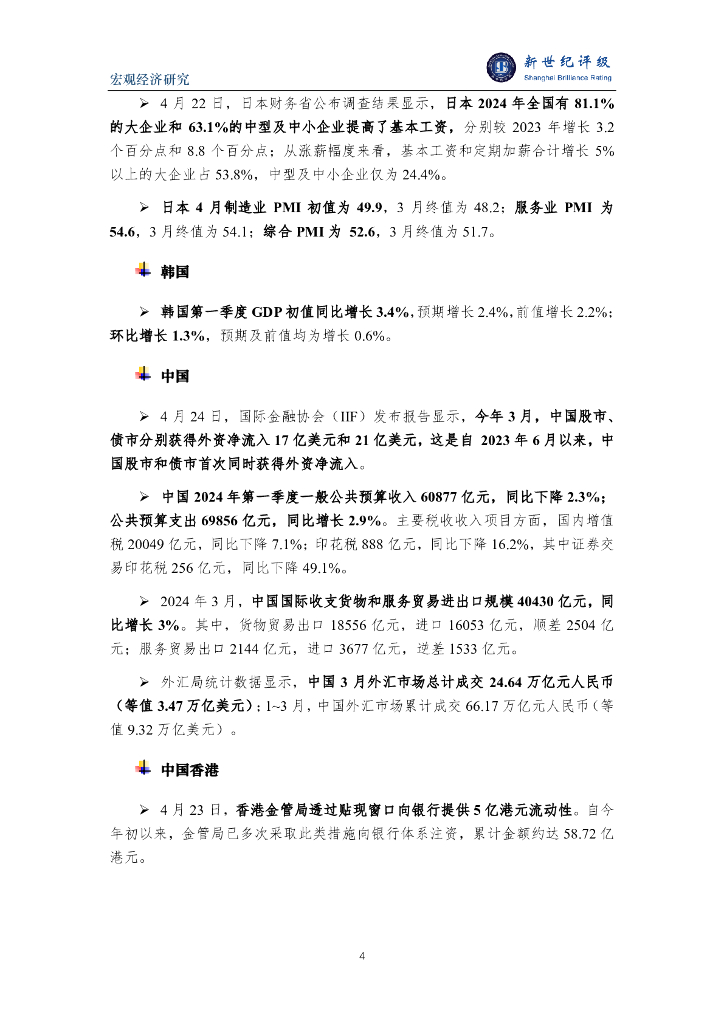 新世纪评级:美一季度经济增速不及预期 中国股债两市同获外资净流入——全球宏观经济周报(2024/4/20-4/26).pdf