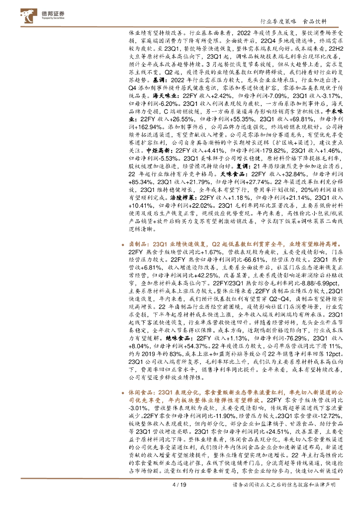 德邦证券:食品饮料行业2022年报及2023一季报总结:Q1环比改善明显,坚持全年复苏主线.pdf