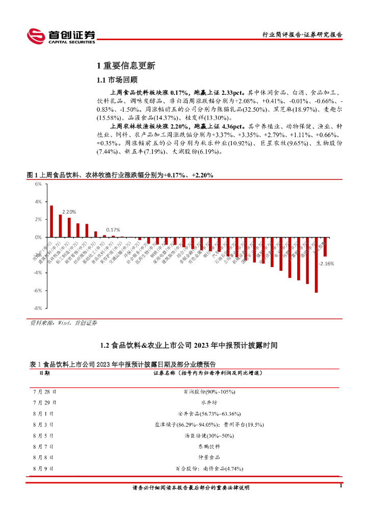 首创证券:农林牧渔&食品饮料:关注食品细分成长赛道,底部布局养殖板块.pdf