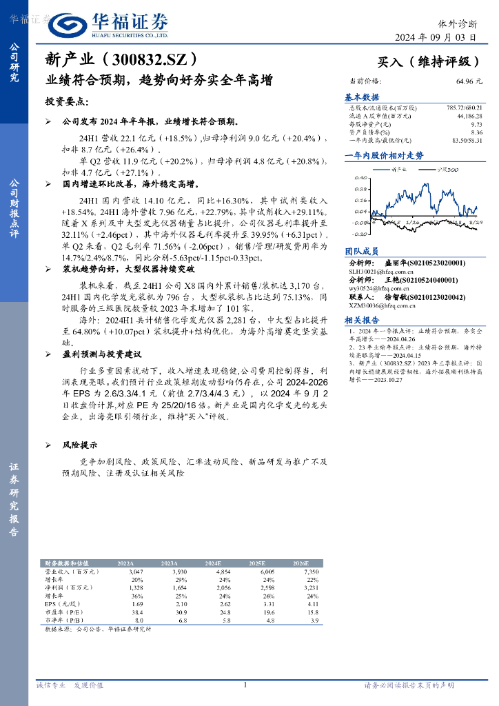华福证券:新产业(300832)-业绩符合预期,趋势向好夯实全年高增.pdf