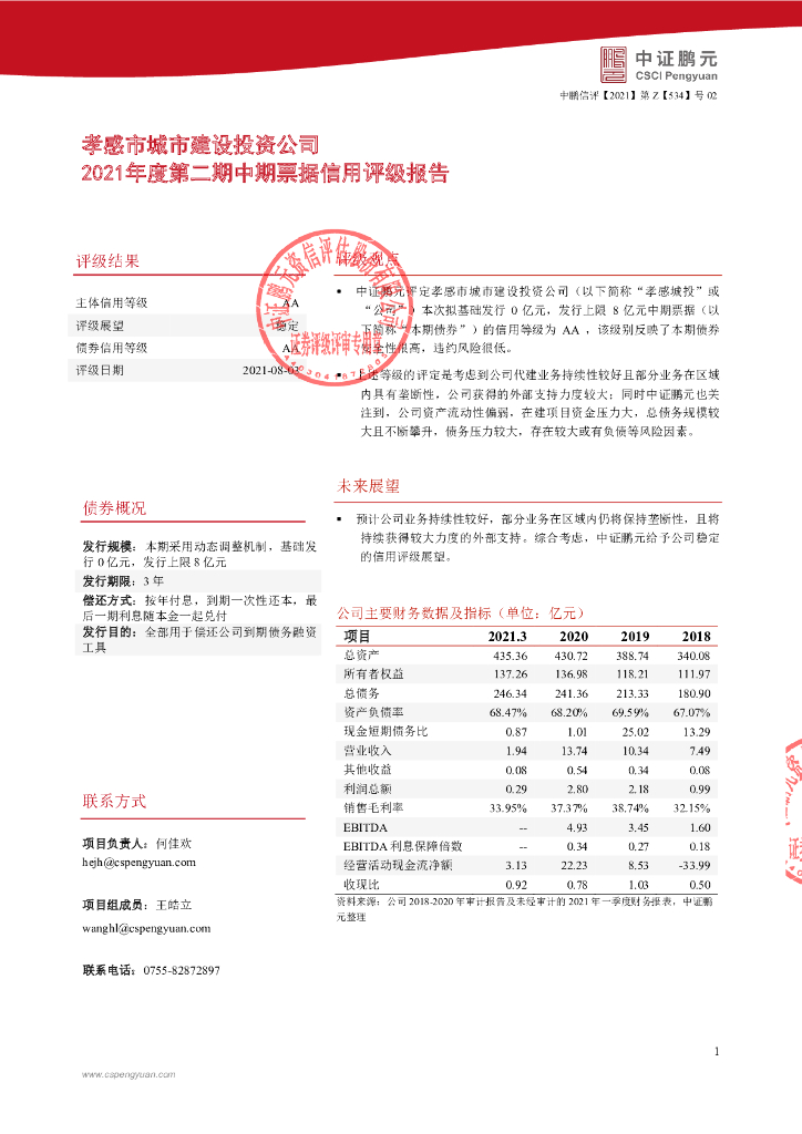 鹏元:孝感市城市建设投资公司主体信用评级报告.pdf
