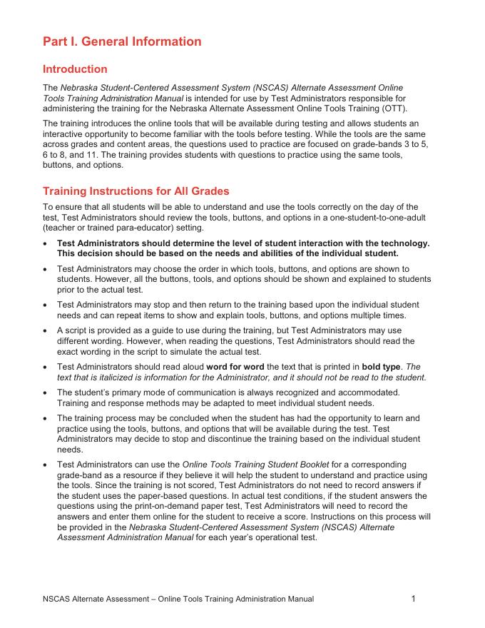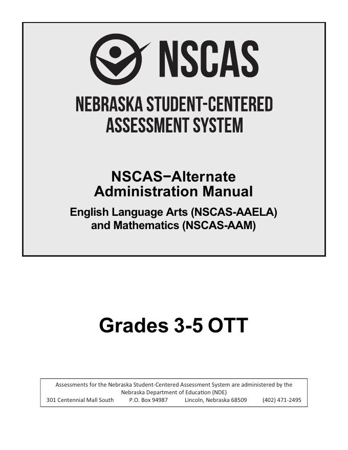 NSCAS-Alternate Administration Manual English Language Arts (NSCAS-AAELA) and Mathematics (NSCAS-AAM) Grades 3-5 OTT NSCAS Alternate Assessment – Online Tools Training Administration Manual.pdf
