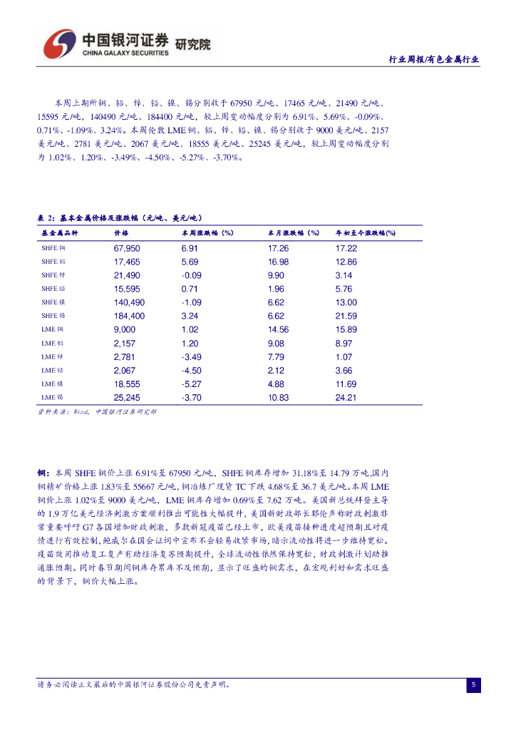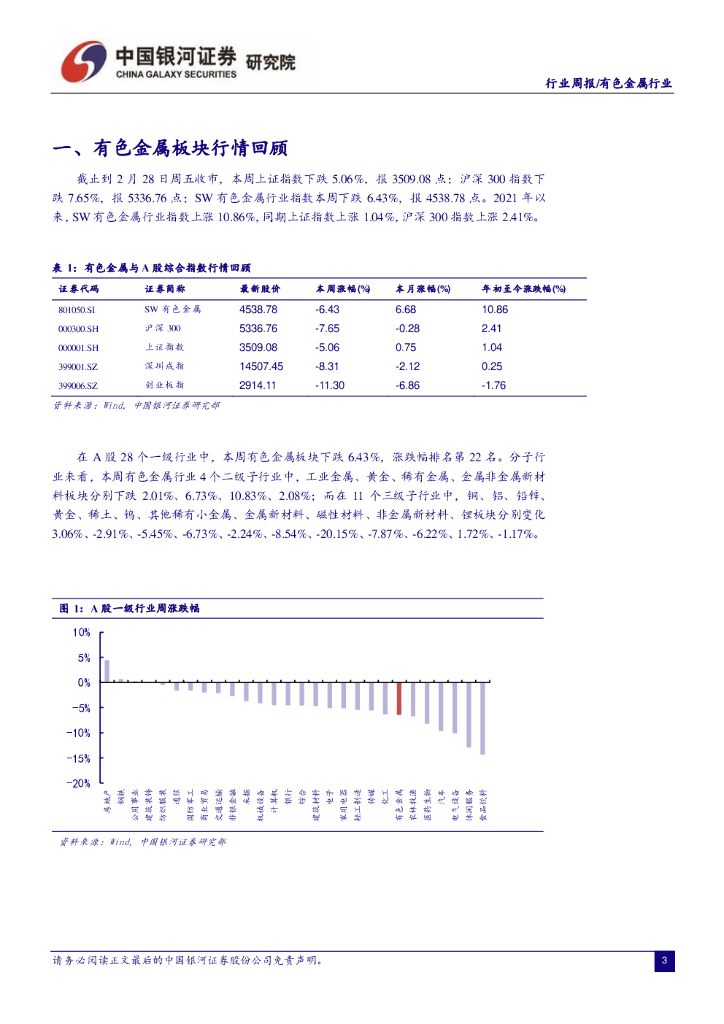 中国银河:有色金属行业周报:经济复苏通胀预期抬升,继续推荐顺周期有色金属资源行情.pdf