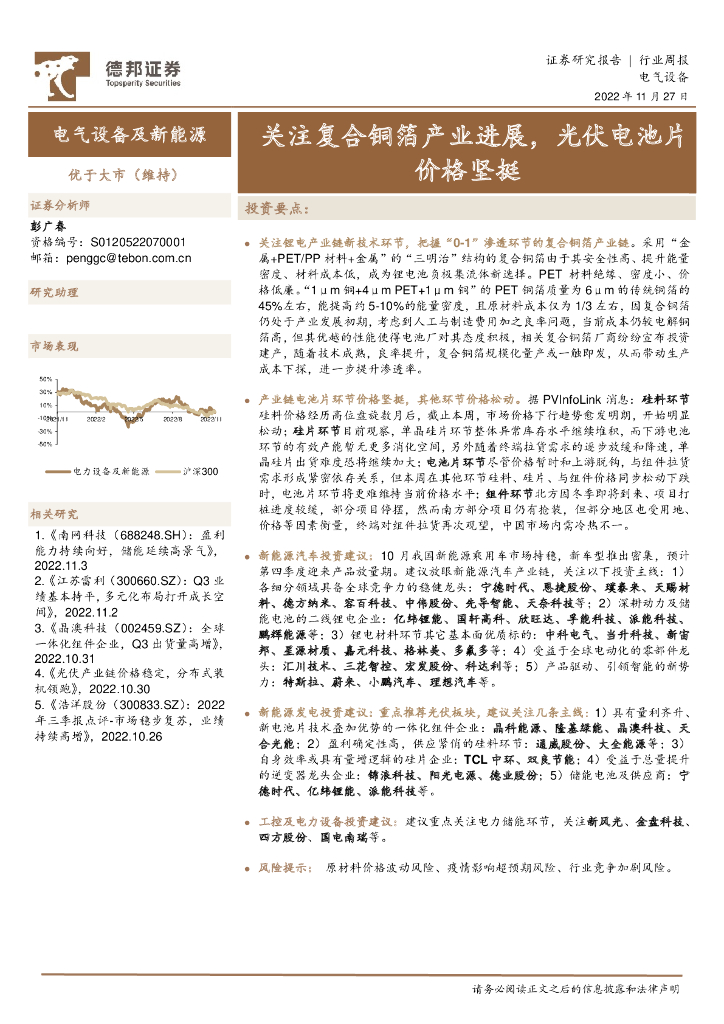 德邦证券:电气设备及新能源行业周报:关注复合铜箔产业进展,光伏电池片价格坚挺.pdf