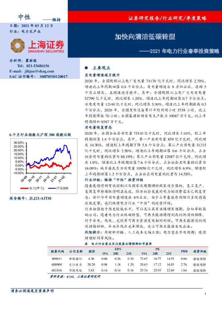 上海证券:2021年电力行业春季投资策略:加快向清洁低碳转型.pdf