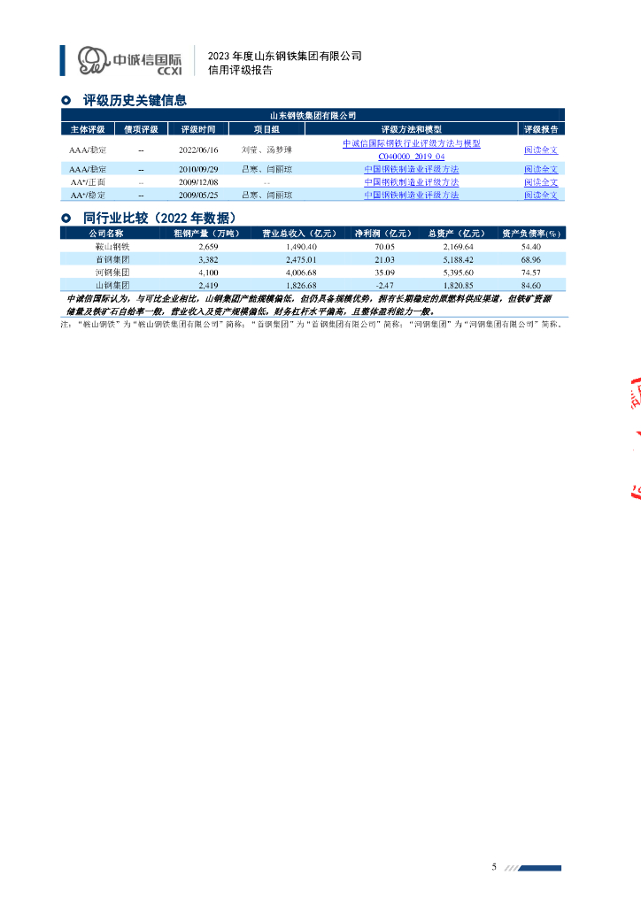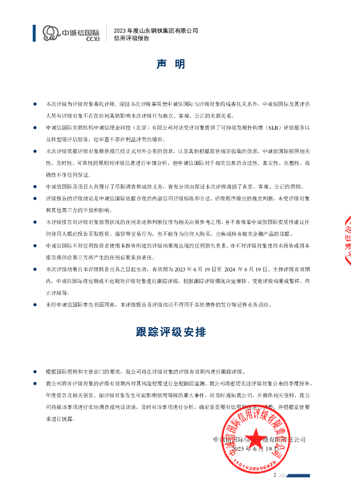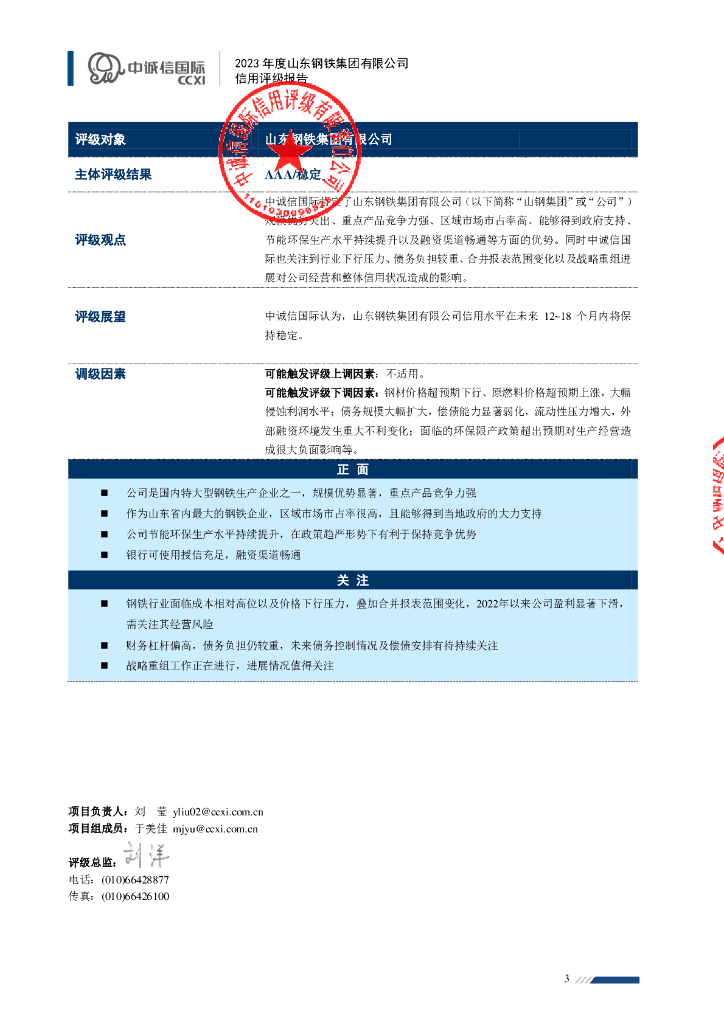 中诚信:2023年度山东钢铁集团有限公司信用评级报告.pdf