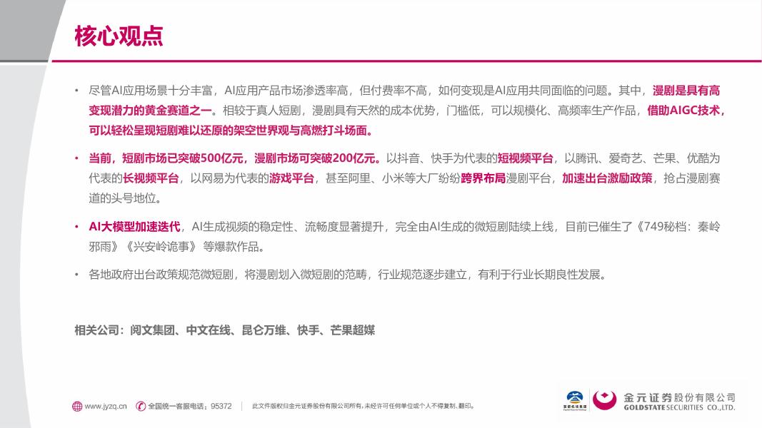 金元证券:漫剧:AIGC重塑内容生态,率先跑通AI变现模式.pdf