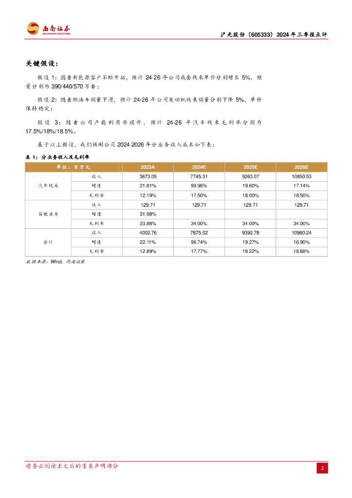 西南证券:沪光股份(605333)-2024年三季报点评:Q3业绩超预期,毛利率持续提升.pdf