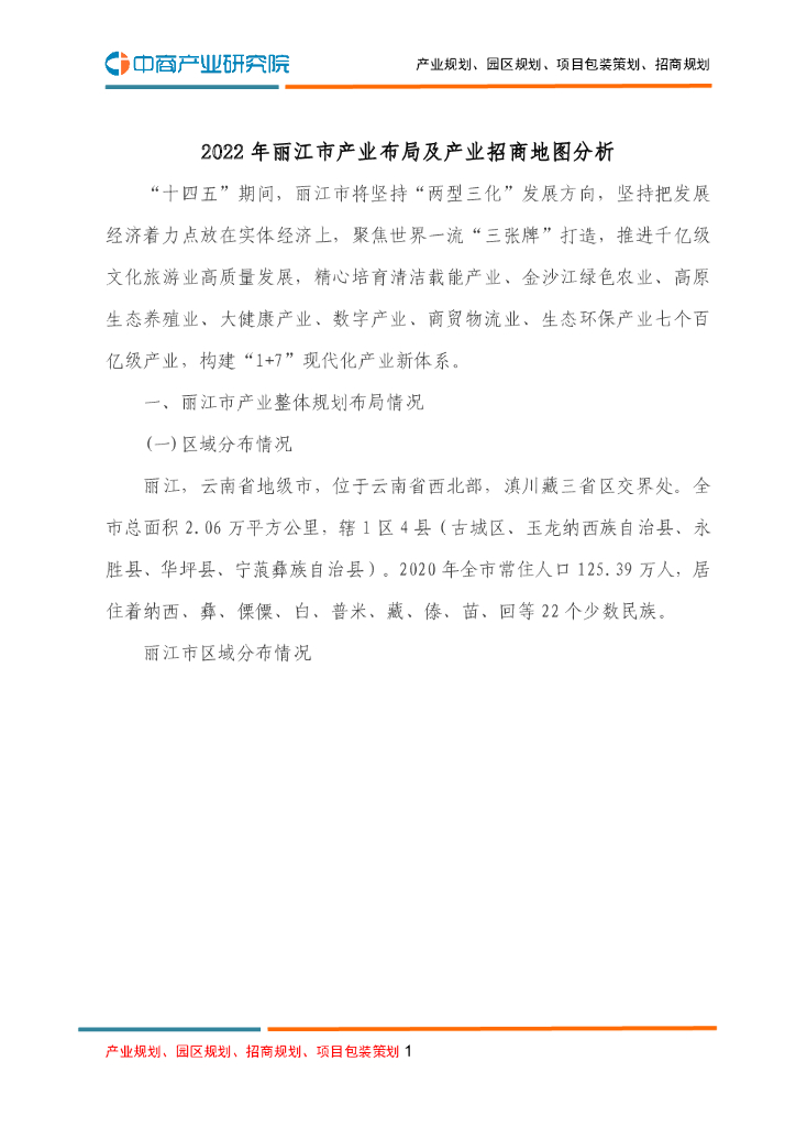 2022年丽江市产业布局及产业招商地图分析.pdf