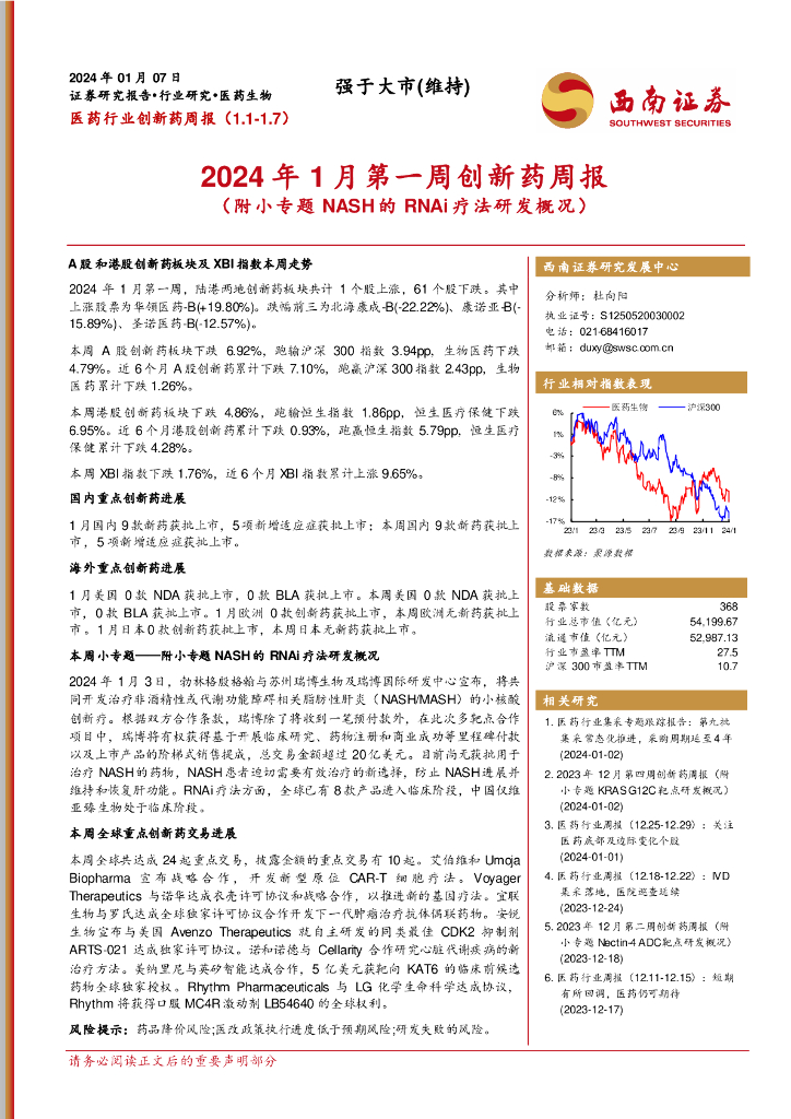 西南证券:2024年1月第一周创新药周报(附小专题NASH的RNAi疗法研发概况).pdf