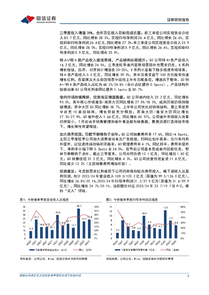 国信证券:今世缘(603369)-三季度产品结构升级,提前锁定百亿收入目标.pdf
