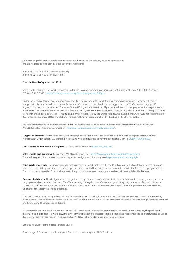 WHO世界卫生组织:2025年心理健康和文化、艺术和体育部门的政策和战略行动指南报告(英文版).pdf