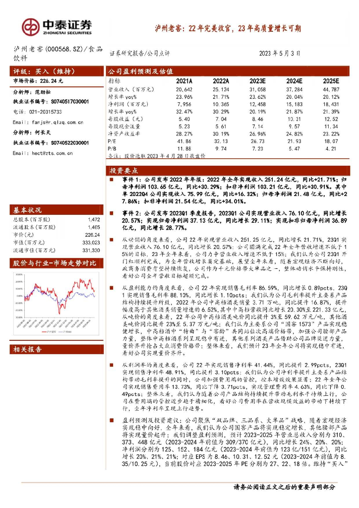 中泰证券:泸州老窖:22年完美收官,23年高质量增长可期.pdf