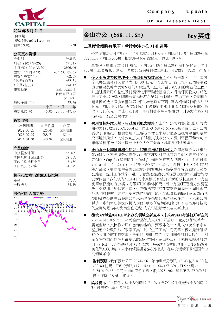 群益证券:金山办公(688111)-二季度业绩略有承压,后续关注办公AI化进展.pdf