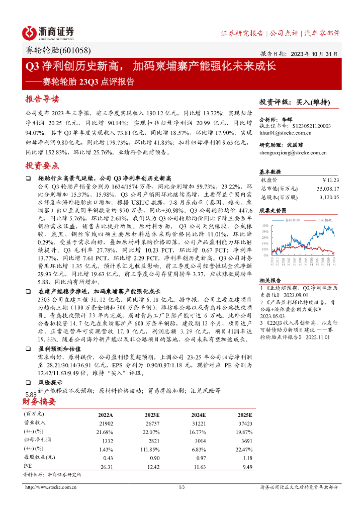 浙商证券:赛轮轮胎(601058)-Q3净利创历史新高, 加码柬埔寨产能强化未来成长.pdf