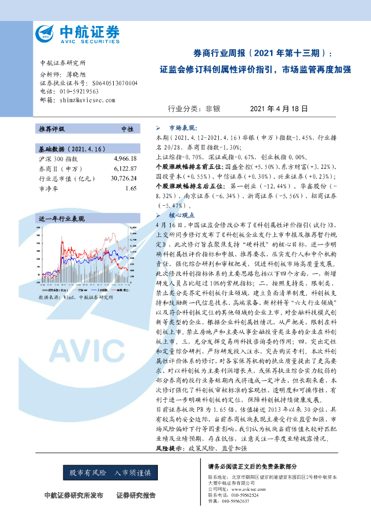 中航证券:券商行业周报(2021年第十三期):证监会修订科创属性评价指引,市场监管再度加强.pdf