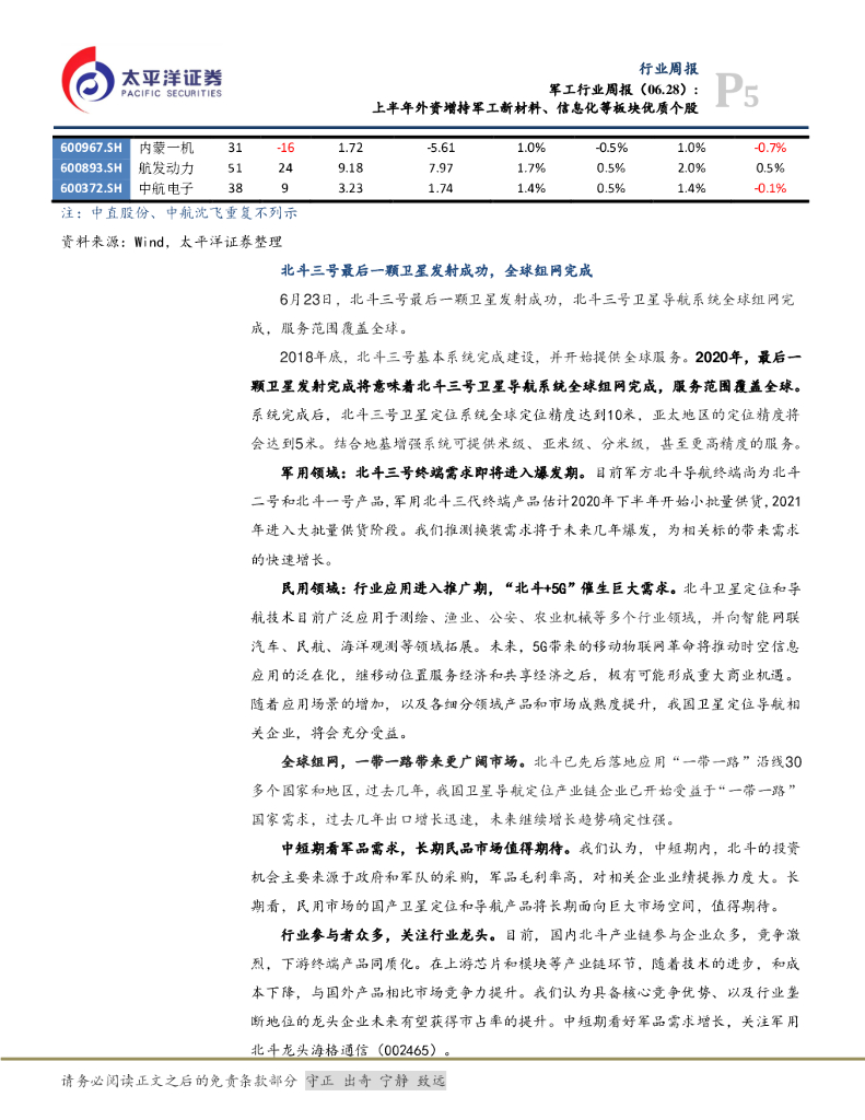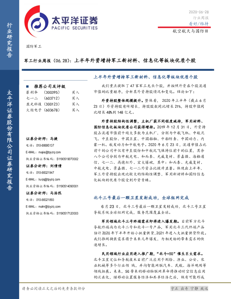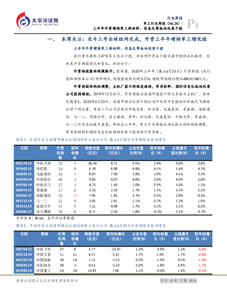 太平洋证券:军工行业周报:上半年外资增持军工新材料、信息化等板块优质个股.pdf