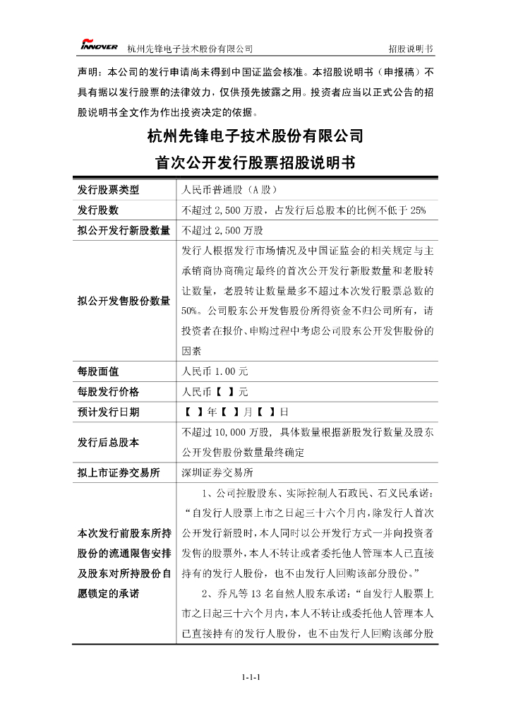 杭州先锋电子技术股份有限公司深交所主板IPO上市招股说明书.pdf