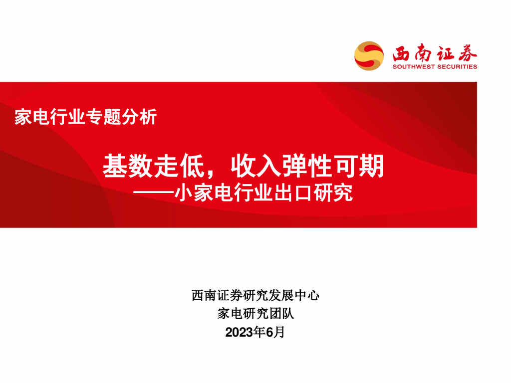 西南证券:小家电行业出口研究:基数走低,收入弹性可期.pdf