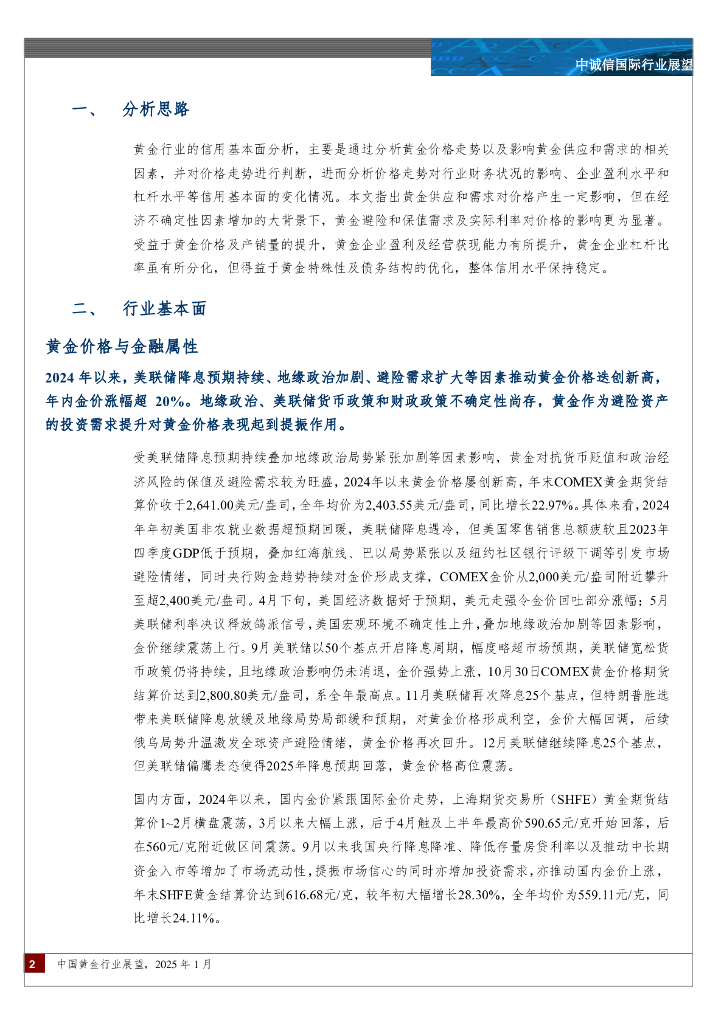中诚信国际:中国黄金行业展望,2025年1月.pdf