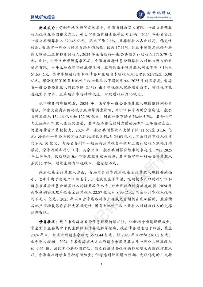 新世纪评级:青海省及下辖各州市经济财政实力与债务研究(2025).pdf