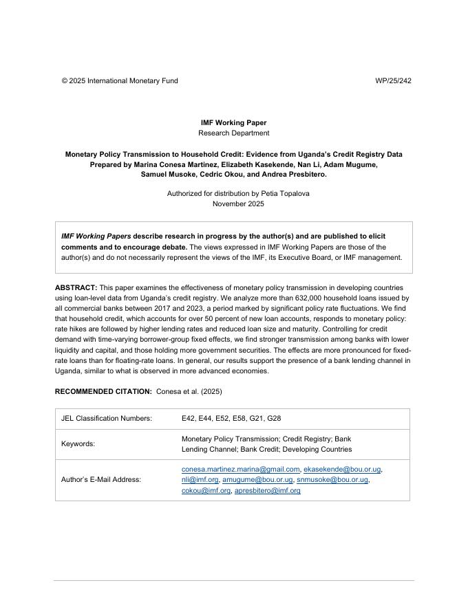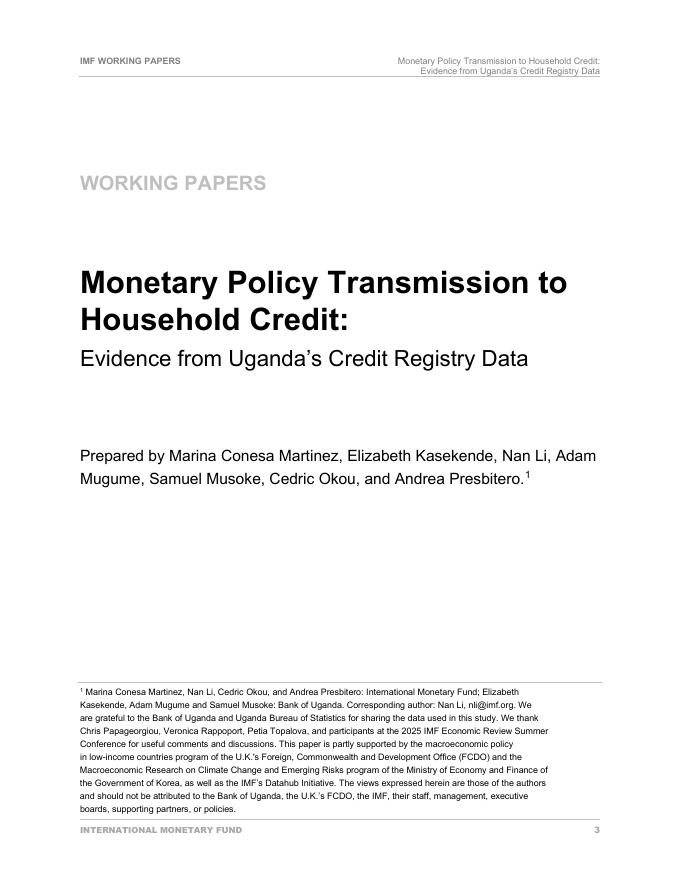 国际货币基金组织:货币政策向家庭信贷的传导:来自乌干达信贷登记数据的证据(英文版).pdf