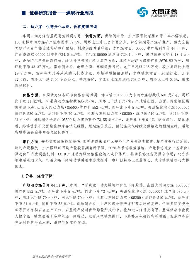 大同证券:煤炭行业周报:动力煤价震荡回调,炼焦煤价延续上涨.pdf