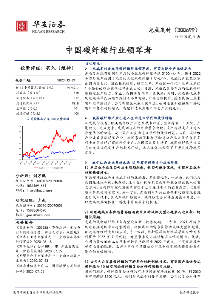 华安证券:光威复材(300699)-中国碳纤维行业领军者.pdf