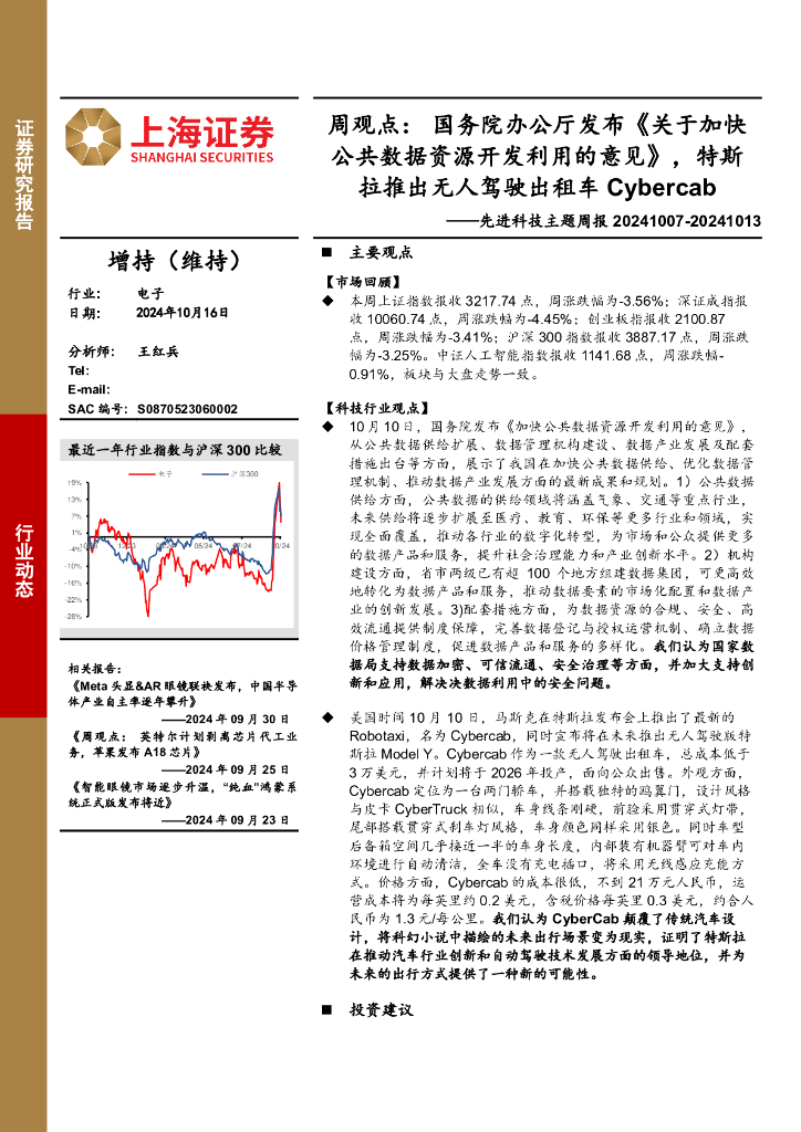 上海证券:电子行业先进科技主题周报-周观点:国务院办公厅发布《关于加快公共数据资源开发利用的意见》,特斯拉推出无人驾驶出租车Cybercab.pdf