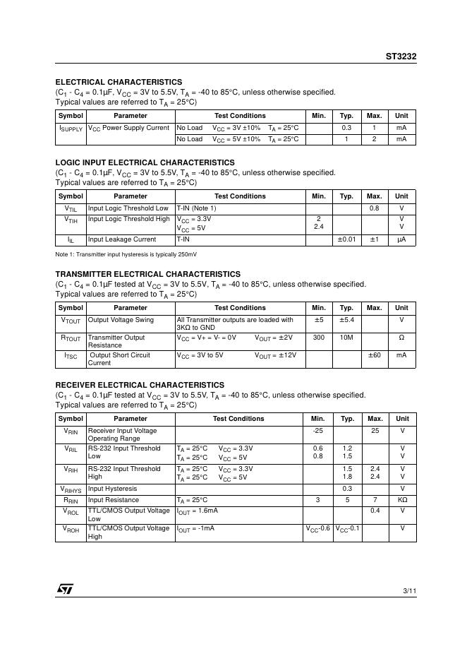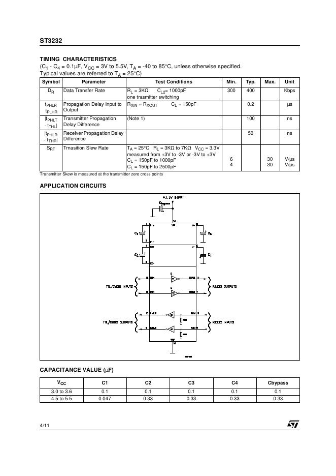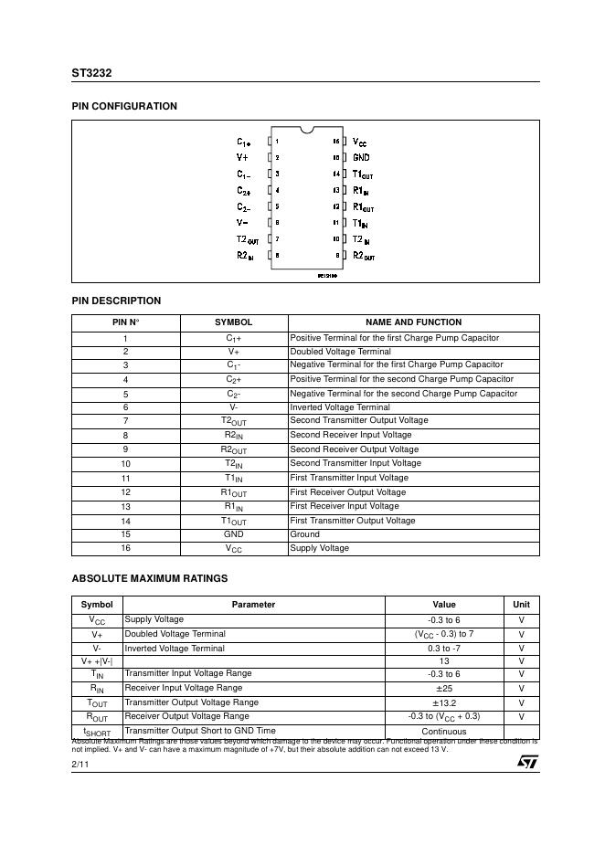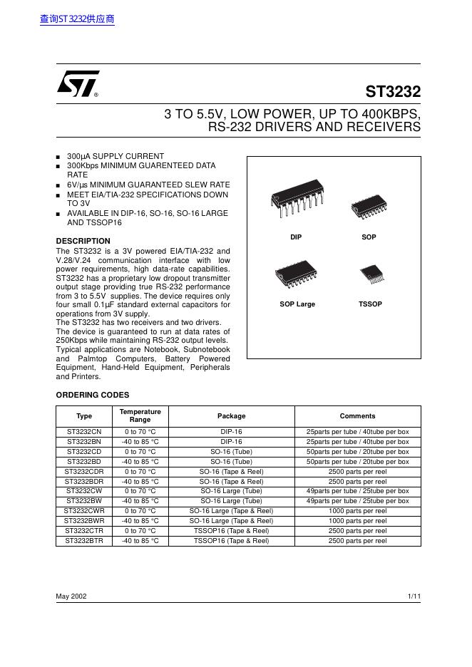 ST ST3232 3 TO 5.5V, LOW POWER, UP TO 400KBPS, RS-232 DRIVERS AND RECEIVERS 数据手册.pdf