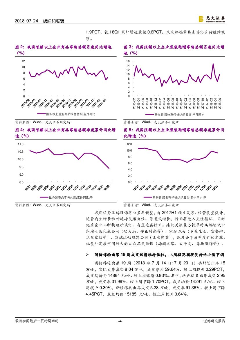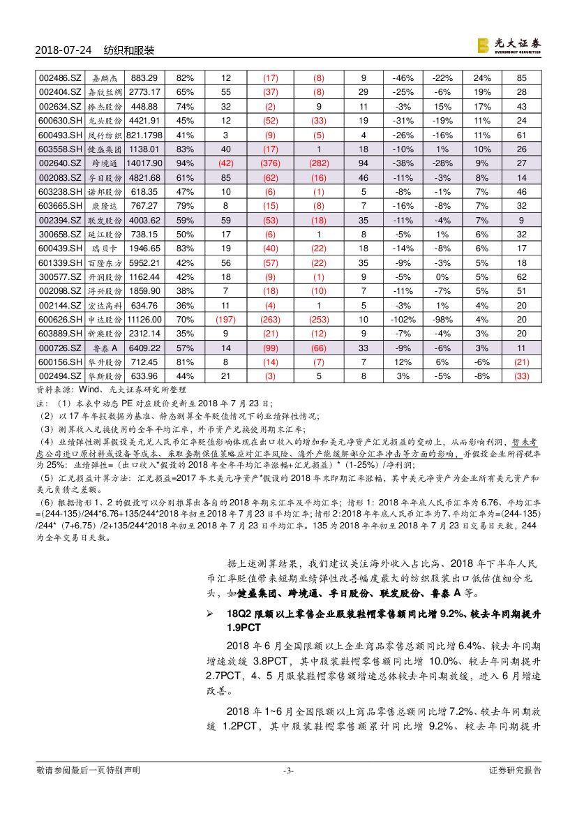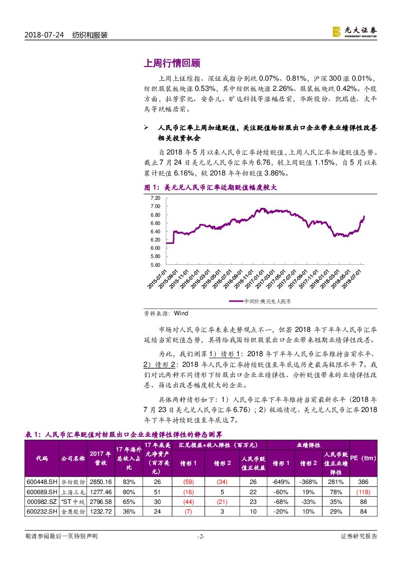 光大证券:纺织服装行业周报:人民币汇率加速贬值,18Q2服装鞋帽零售同增9.2%.pdf