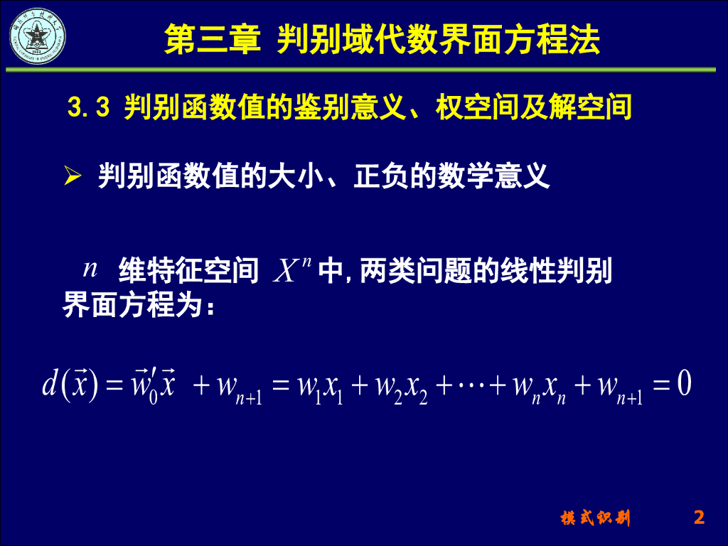 《模式识别》演示文稿-判别函数值的鉴别意义、权空间及解空间、fisher线性判别.pdf