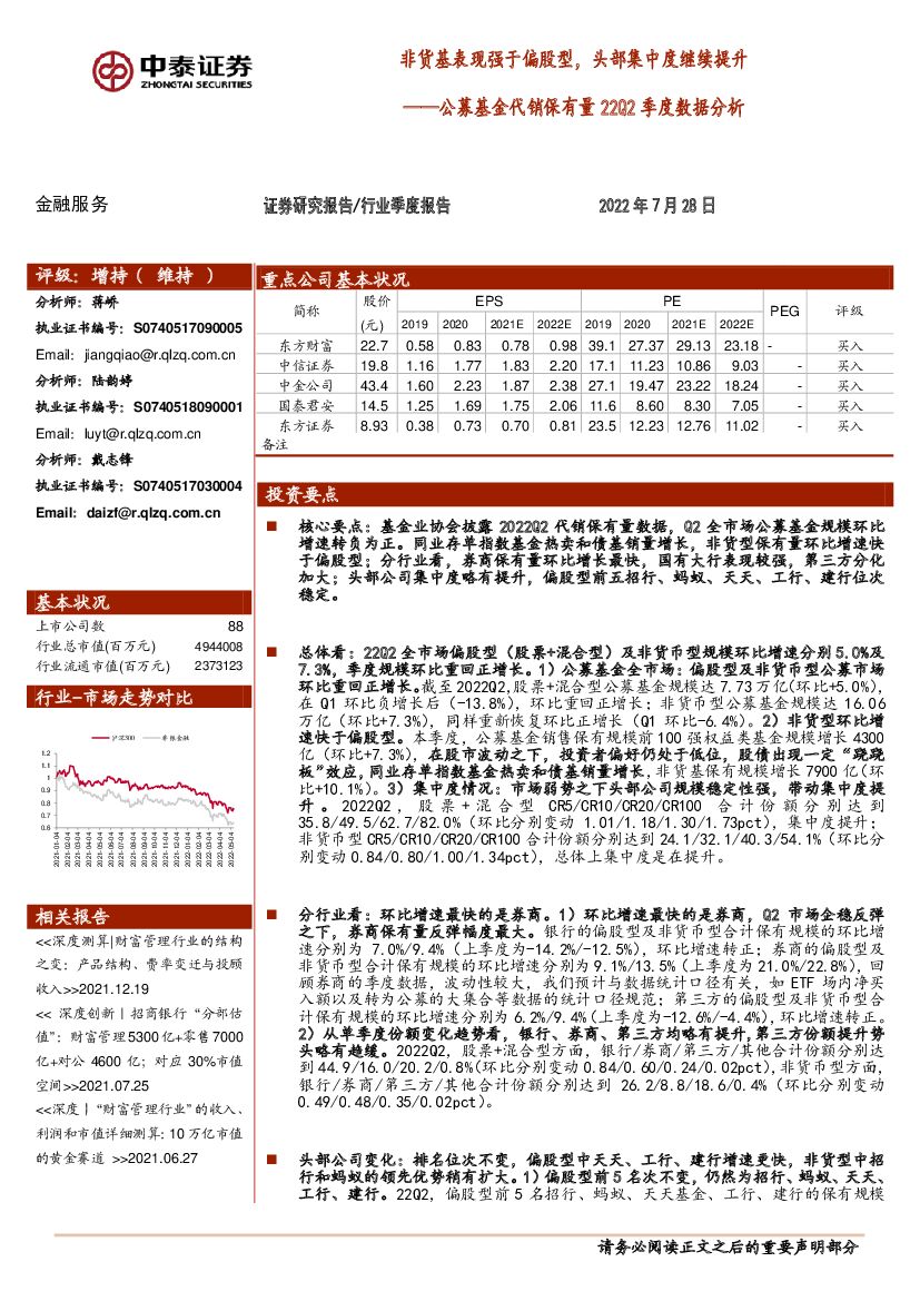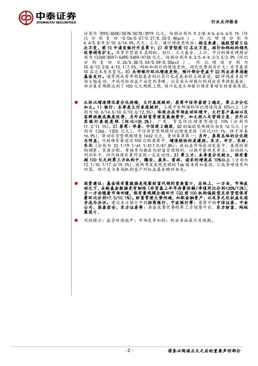中泰证券:公募基金代销保有量22Q2季度数据分析:非货基表现强于偏股型,头部集中度继续提升.pdf