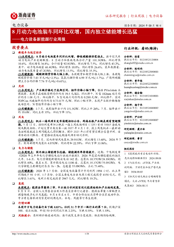 浙商证券:8月动力电池装车同环比双增,国内独立储能增长迅猛.pdf