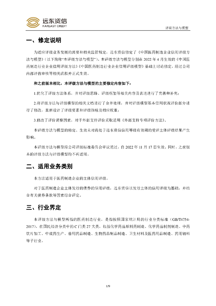 远东资信:医药制造企业信用评级方法与模型.pdf