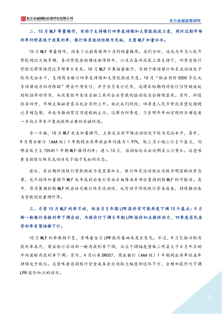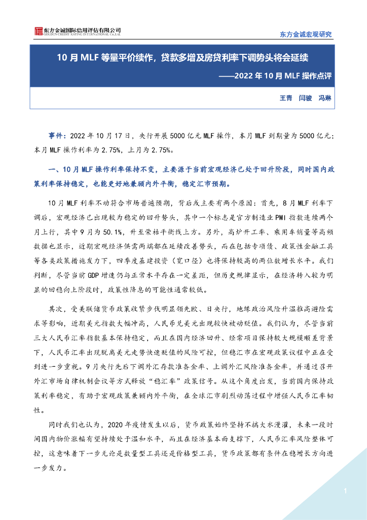 东方金诚:2022年10月MLF操作点评-10月MLF等量平价续作,贷款多增及房贷利率下调势头将会延续.pdf