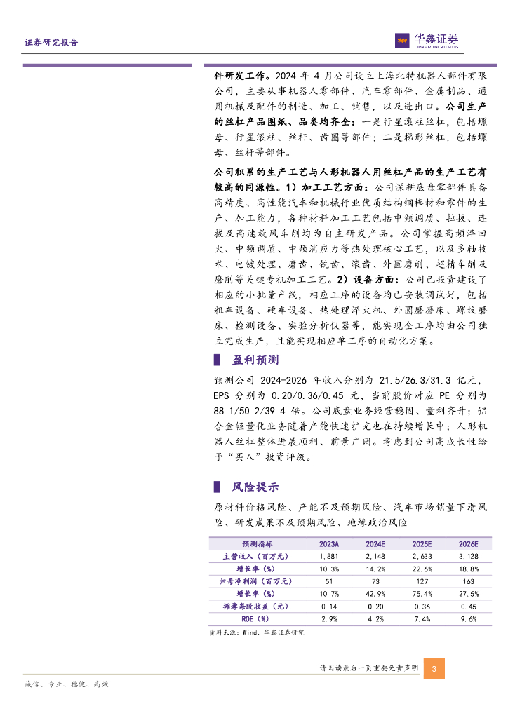 华鑫证券:北特科技(603009)-公司动态研究报告:汽车底盘细分行业龙头,人形机器人丝杠有望打开公司成长快通道.pdf