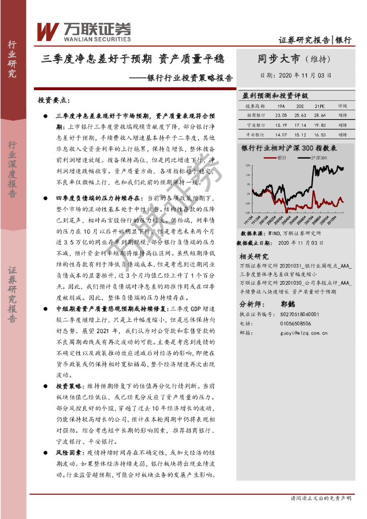 万联证券:银行行业投资策略报告:三季度净息差好于预期 资产质量平稳.pdf