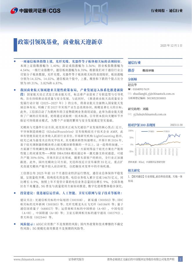 中国银河:通信行业行业周报:政策引领筑基业,商业航天迎新章.pdf