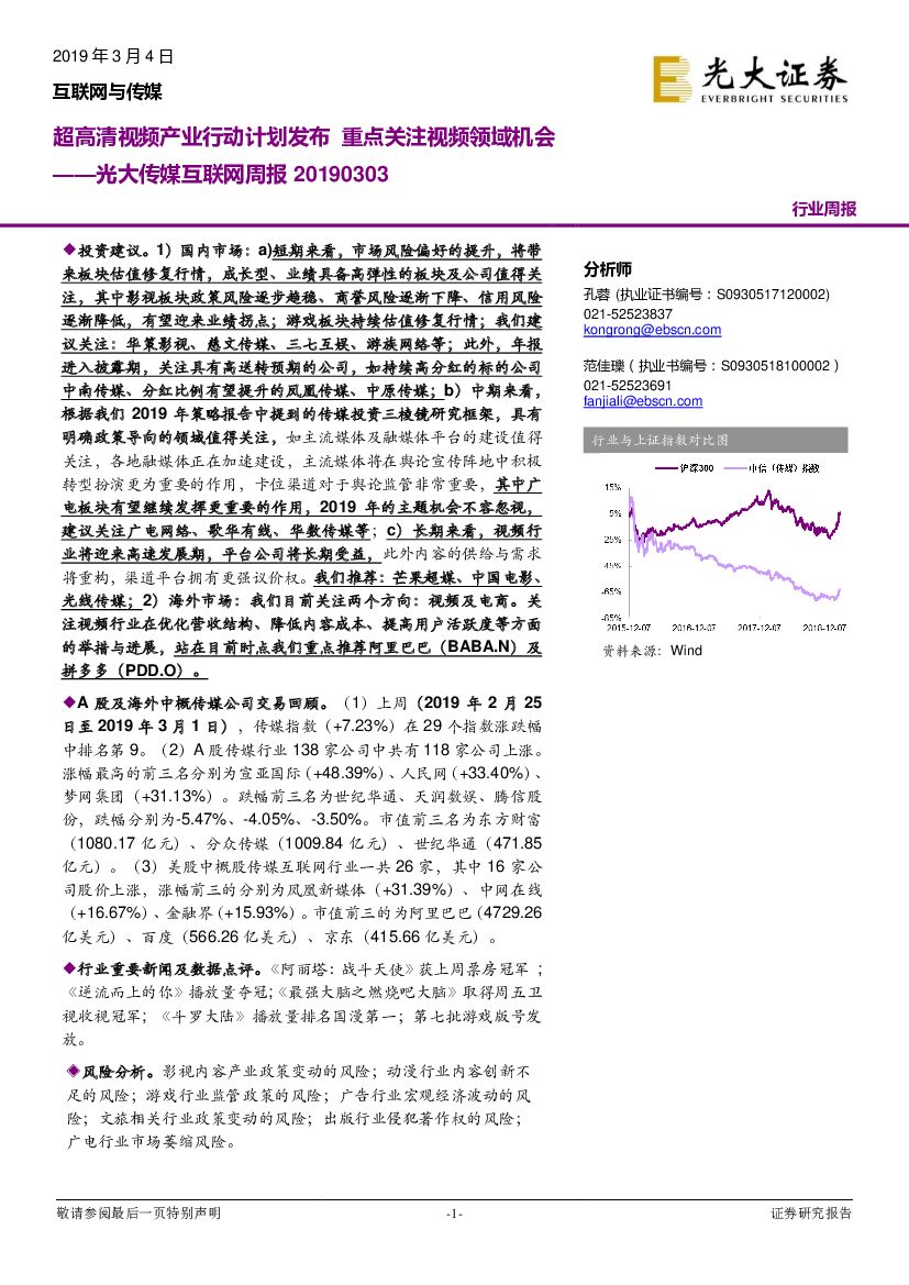 光大证券:传媒互联网行业周报:超高清视频产业行动计划发布,重点关注视频领域机会.pdf
