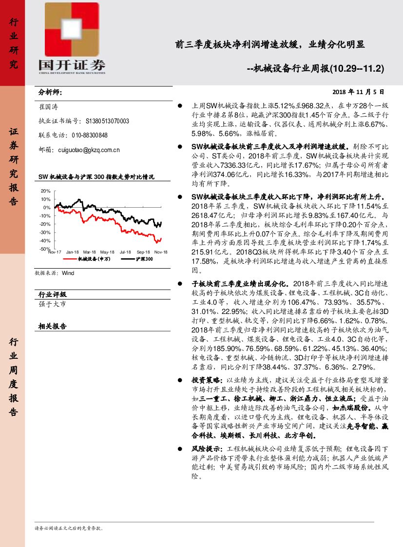 国开证券:机械设备行业周报:前三季度板块净利润增速放缓,业绩分化明显.pdf