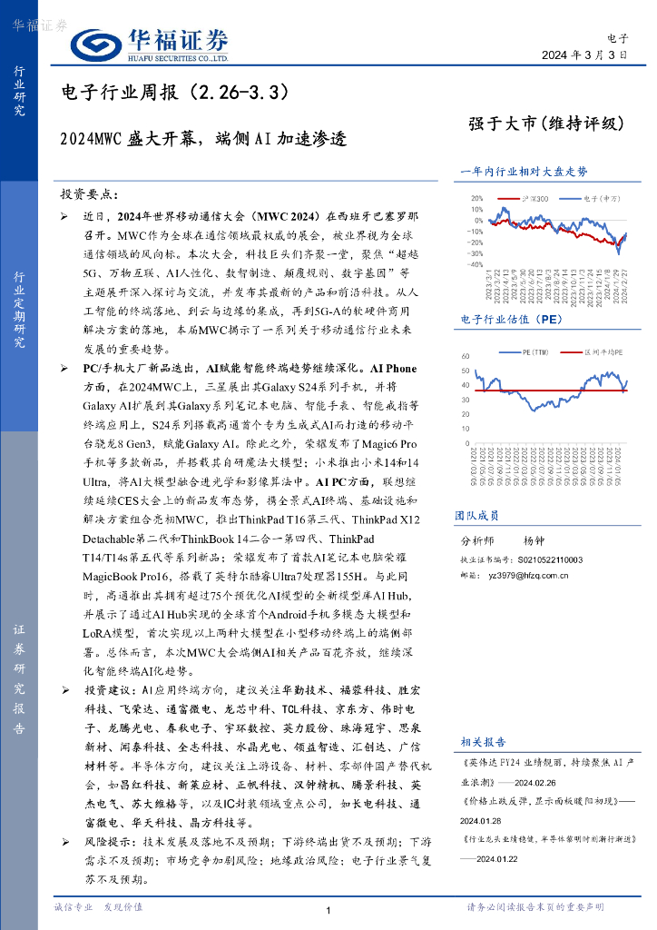 华福证券:电子行业周报:2024MWC盛大开幕,端侧AI加速渗透.pdf