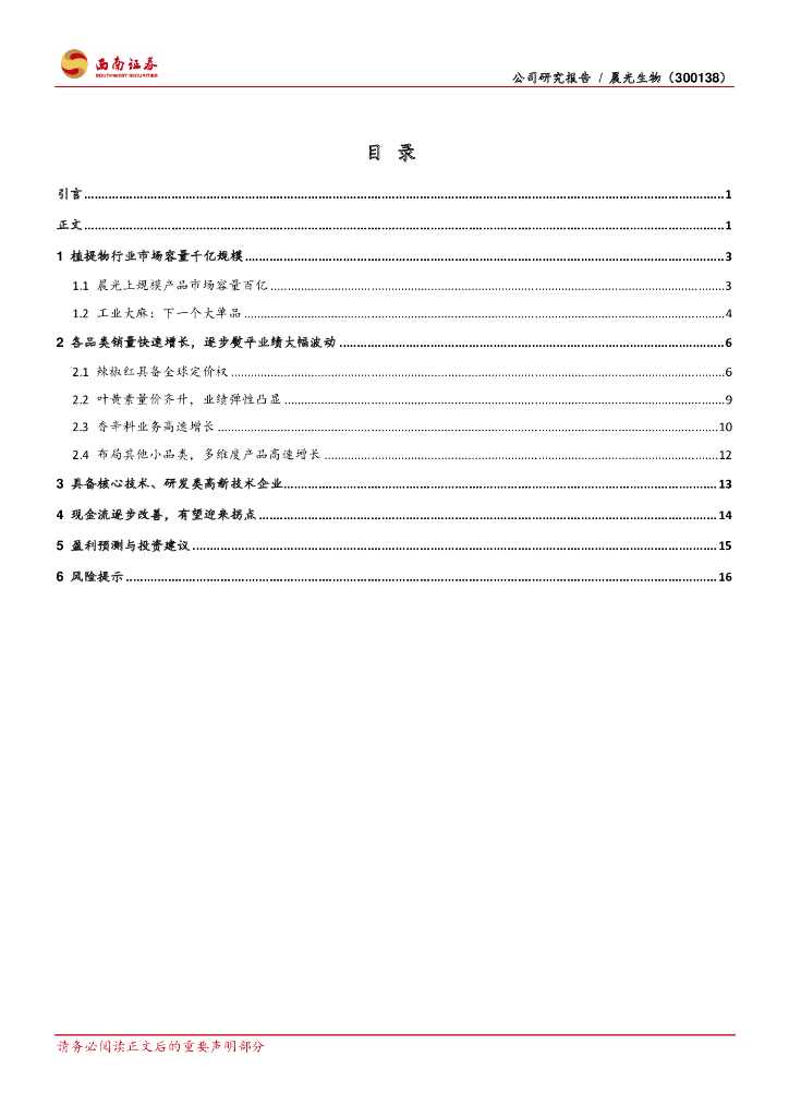 西南证券:晨光生物(300138)-高新技术+植提物隐形冠军,长期持续增长可期.pdf