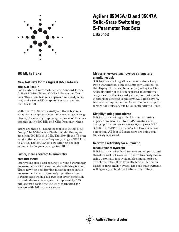 Agilent 85046A/B and 85047A Solid-State Switching S-Parameter Test Sets Data Sheet.pdf