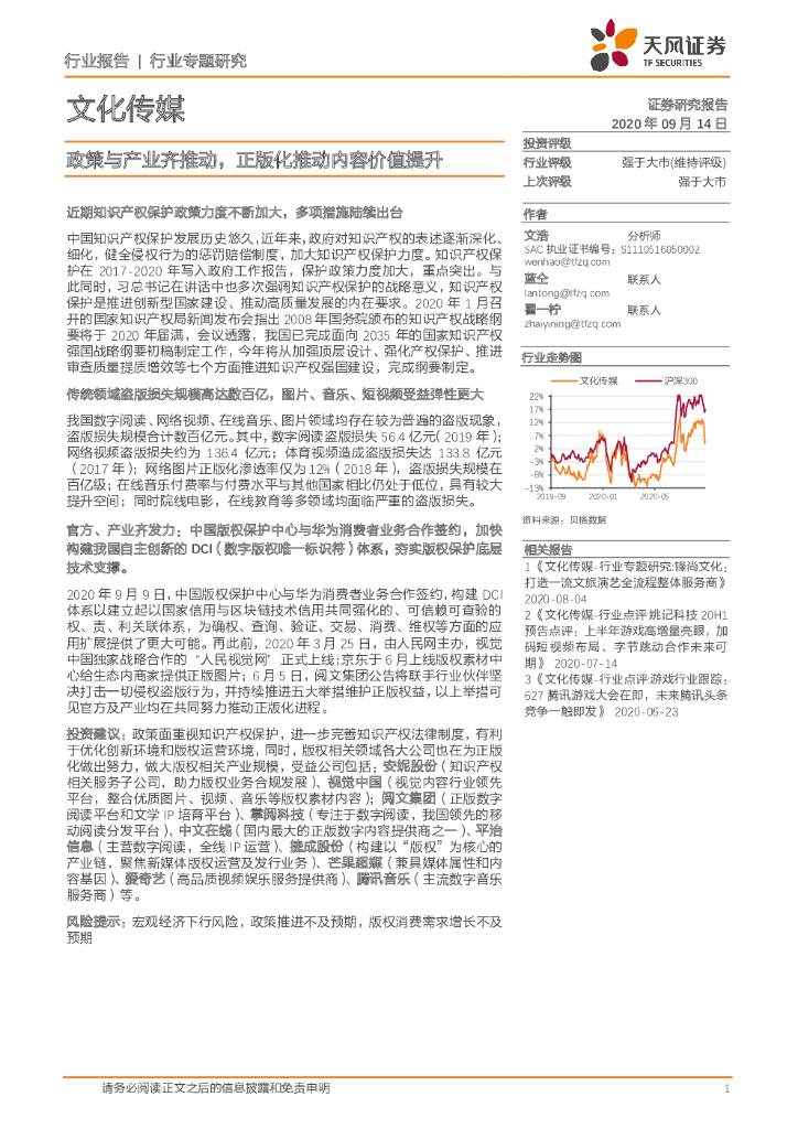 天风证券:文化传媒行业专题研究:政策与产业齐推动,正版化推动内容价值提升.pdf