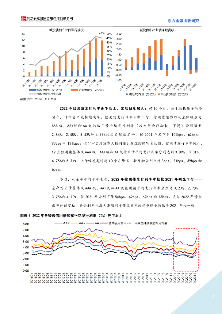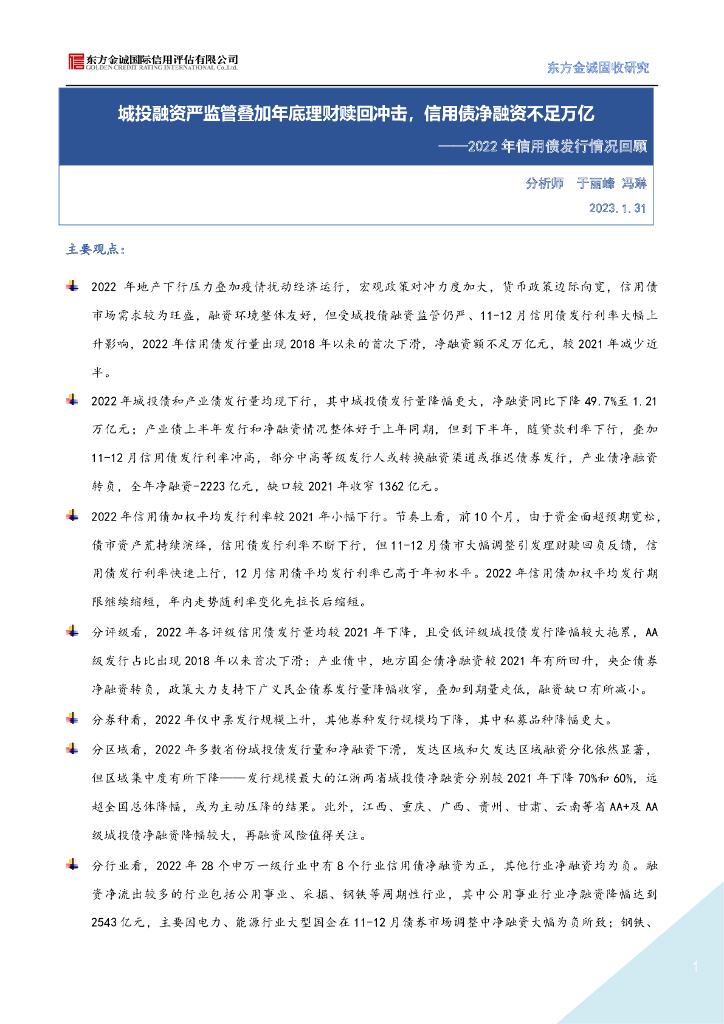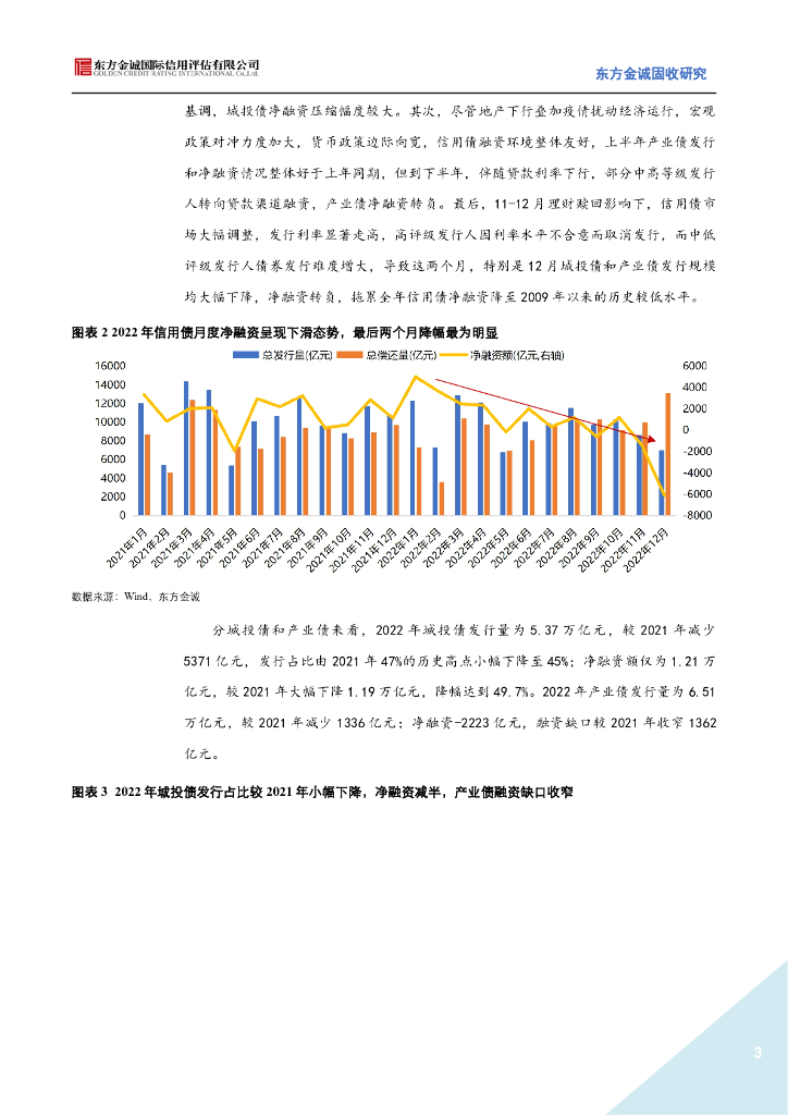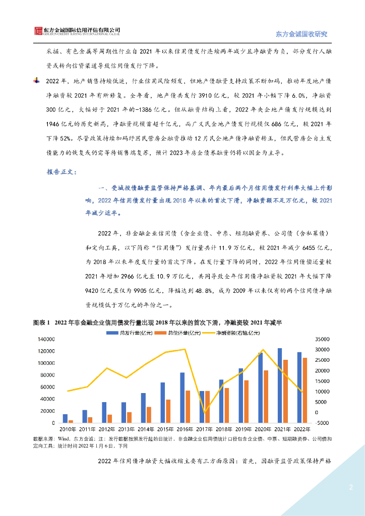 东方金诚:城投融资严监管叠加年底理财赎回冲击,信用债净融资不足万亿——2022年信用债发行情况回顾.pdf