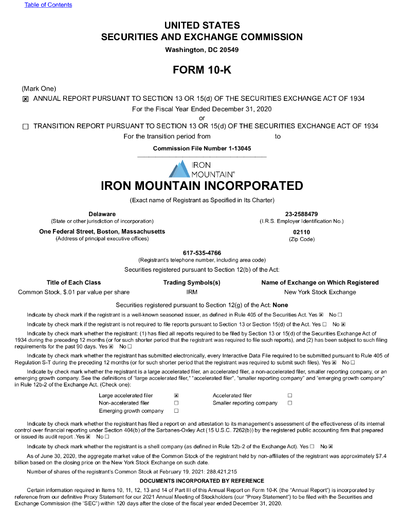 Iron Mountain Incorporated(IRM)2020财年年度报告(英文版).pdf