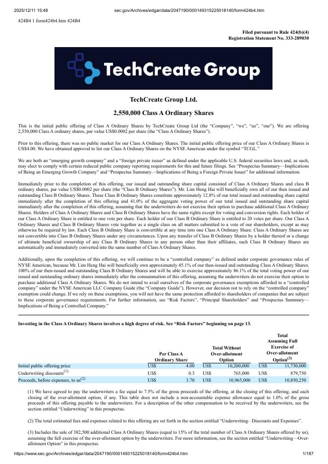 TechCreate Group Ltd.纽约证券交易所IPO上市招股说明书.pdf